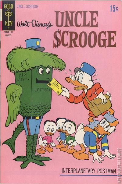 Scrooge, fed up with bad service from the post office becomes postmaster and ends up delivering mail to the planet Venus. Cover reprinted from Uncle Scrooge #53 (Gold Key)