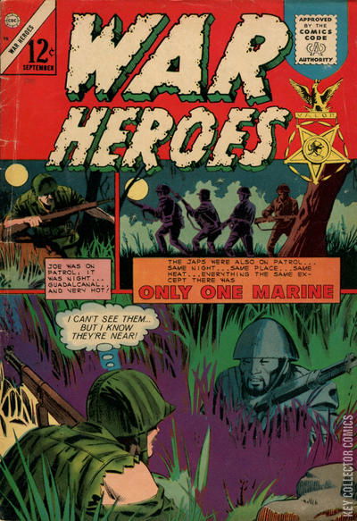 Stories by unknown. Art by Charles Nicholas & Rocke Mastroserio, Bill Montes & Ernie Bache and unknown. Featuring: "Mercy Mission"; "Only One Marine"; "Thunder Over Berlin"; "Hey, Joe! Help Me! Hey, Joe! Medic!"; and "Afrika Korps And Pvt. Meacham"! Plus: 1-page text article "The First Shot"! 32 pages, full color. Cover price $0.12.