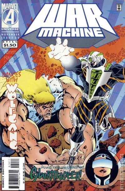 "A Little Muscle!" Part 1 of 2. Guest-starring US Agent. Hawkeye and Black Widow cameos. The New War Machine confronts a powerhouse called Wolfgang. Plus, Rhodes learns his friend Clint Barton (Hawkeye) is wanted for murder.