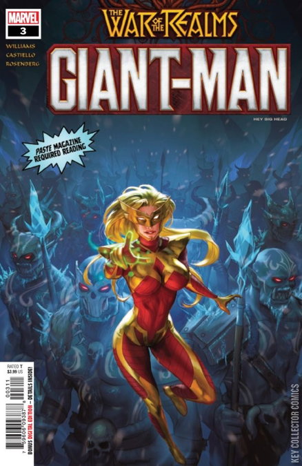 PART THREE, AND SOME LITTLE LADIES THE BIGGER THEY ARE... Moonstone's army of primordial Frost Giants is gaining in number with every passing moment. Only Ant-Man, Giant-Man, Goliath and Atlas can stop them! But an unseen enemy is about to get in their way... CAN YOU GUESS THE IDENTITY OF THE MOLE? THE WAR OF THE REALMS TIE-IN