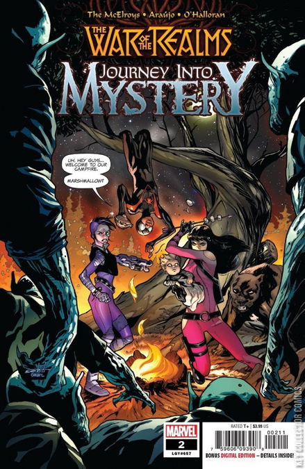 THE McELROYS TAKE MILES MORALES AND COMPANY CAMPING! Looks like Balder and his babysitting team have more than fire goblins and foul diapers to worry about! A marshmallow-roasting campout in the Midwest goes up in flames when deadly shape-shifting aliens make a campfire appearance! But the real danger is barreling down the highway behind them. Ares, the Greek God of War, is hot on baby Laussa’s trail. If Balder the Brave, Wonder Man, Sebastian Druid, Kate Bishop, Miles Morales and Deathlocket are going to stay ahead of him…Kate’s gonna have to teach one of them to drive.