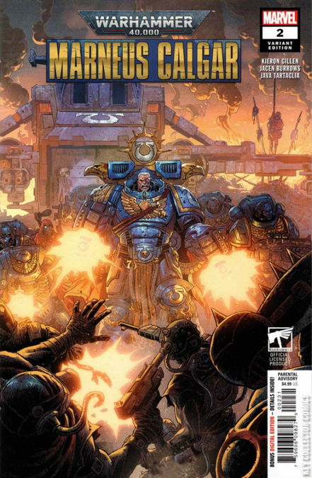 DESCENT INTO CHAOS! The untold origin of MARNEUS CALGAR continues as a startling discovery is made on the moon of NOVA THULIUM! But will the young Marneus face his first triumph…or a soul-shattering loss? A shocking revelation in the history of the legendary Chapter Master of the Ultramarines that will forever change what you thought you knew!