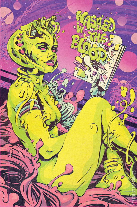 Cover artist Flops! brings his retro pulp style to the world of Freak Snow in this Washed in the Blood variant. What if you were called upon by the WORST god of all time? In a frozen post-apocalyptic wasteland called 'Freak Snow,' a young cult survivor hears the voice of the self-proclaimed god of guns. Like any human would be, he is hypnotized by the prospect of power by listening to this divine freak. A path to salvation paved with love, turmoil, and mostly death. Explore the world of Kevin Roditeli's Freak Snow in Massive's take on 'Black Mirror'with a post-apocalyptic twist! A tale inspired by Mad Max, Hellraiser, Fallout and the filmography of David Cronenberg. 'Washed In The Blood takes you on a trippy thrill ride through visceral illustrations and an intensely cold, savage, post-apocalyptic tale.' - Jason Bennett, Popculthq.com 'The best storytelling (both textually and artistically) that I HAVE EVER SEEN.' - Comicbookposer.com 'If you give yourself to Roditeli's narrative, it will take you somewhere, and you'll arrive at the end smarter than whence you started.' - Blake Morgan, Blakebuzz.com