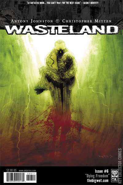 "Dying Freedom" An issue with consequences as grave as its title! As Michael and crew learn more about the post-Big Wet world, more is revealed about both NewBegin and the monstrous Sandeaters! Hop on board the comic that G4 TV called "Part DEADWOOD, part DUNE, and all kick ass!"
