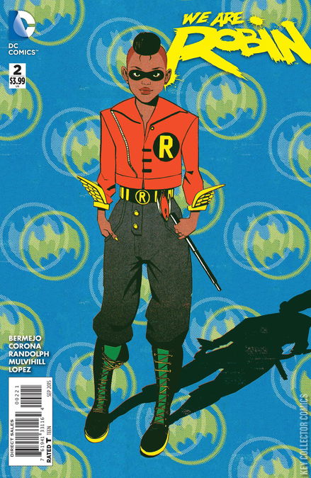 WE ARE...ROBIN! PART 2 Following the appearance of the Robins in the subway, a large fight broke out between the vigilantes and the underground army going for Duke Thomas. Though the fight seems too difficult for the young heroes R-iko rummages through her pack to find a flare and scare off their opposition. They escape through a manhole but as Duke is borderline-unconscious the Robins are instructed to leave him behind for the police. Duke awakens in a police interrogation room sat with a man who asks for details but, discovering that Duke is unresponsive to police, makes an offer to help find Duke's missing parents if he helps with the bombs planted by the underground army. Once Duke denies the offer the man leaves the room. An hour passes and no one has been sent in to collect Duke and when he turns the door handle he finds it unlocked and that the police station was in-fact just one room inside a warehouse. Also inside the warehouse is a motorbike a leather jacket embroidered with the "R" insignia of Robin and a phone telling him to meet up with the Robins nearby. The Robins are all sat upon a rooftop when Duke arrives; he briefs them on the situation with the bombs and they all compare information regarding the man who is running things and who recruited them all. The first bomb target is the Gotham Hall of Records, across the street from them. The Nest's video surveillance follows the underground army's preacher, explaining that he is a puppet of a much larger evil.