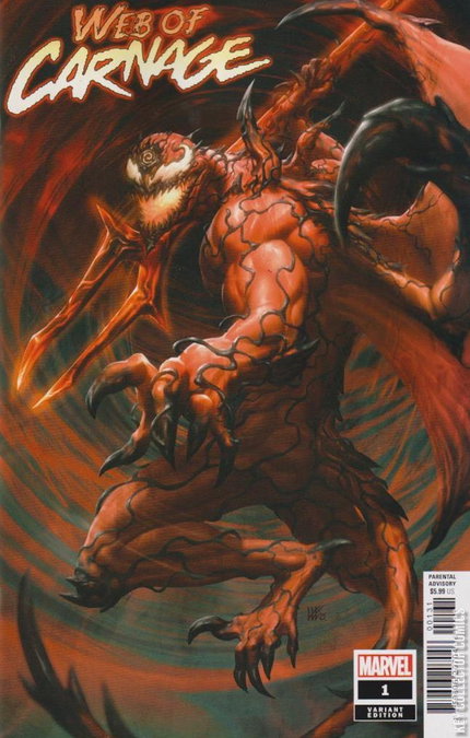 CARNAGE SHALL INHERIT THE EARTH! As Cletus Kasady exacts his vengeance on an unsuspecting city and CARNAGE REIGNS across the Marvel Universe, THE CARNAGE SYMBIOTE remains left to its own devices, adrift among the stars. With its purpose renewed after the DEATH OF THE VENOMVERSE, Carnage has scant few hurdles between it and a glorious ascension to the throne of the King in Black�and the first is named MORLUN. Rated T+