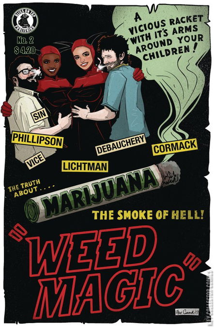Wafting into comic book stores just in time for the 4/20 Holiday, the highly anticipated second issue of Weed Magic rejoins our heroes Moe and Bunny as they continue to search for the elusive origin of their magic Devil's cabbage! Will they learn to control their powers and use them for good or will they be tempted into a life of sin, sexual debauchery and cheese balls? Weed Magic will answer all of your questions about the meaning of life in exquisite detail and provide tens of minutes of reading.