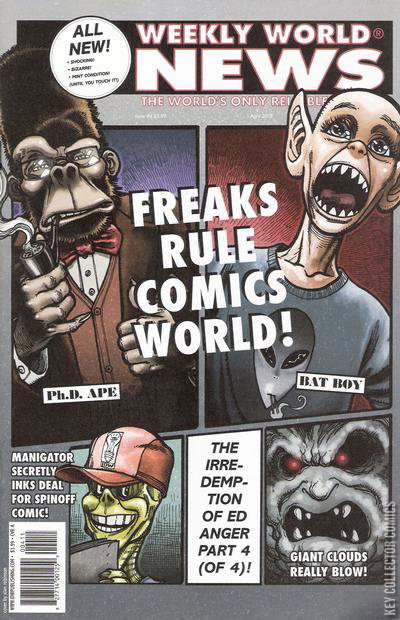 The weather forecast for this concluding issue of the Weekly World News miniseries is cloudy with a chance of death, as Chaos Cloud brings down an Emmerich-like level of destruction, while Ed Anger is beset by freaks on all sides! Will he find redemption at last? Or will being proven wrong about Bat Boy and the others be his final legacy?