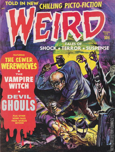 Home / Eerie Publications / Weird / Weird #1 Eerie Publications Released February 1970 Weird #1 Add to Collection Want It Synopsis No synopsis available. Issue 1 of 6 Add to Collection Buy it on eBay Buy on eBay Low $8 Mid $25 High $80 Synopsis No synopsis available. Details Series Weird Cover Date February 1970 Pages 52 UPC N/A Cover Price $0.50 Final Order Cutoff N/A Creators No creators listed. Price Guide Log in or subscribe to access detailed graded price information and market insights. Log In Subscribe