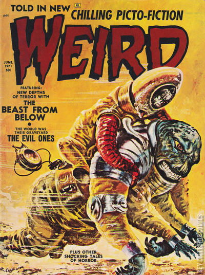 Home / Eerie Publications / Weird / Weird #3 Eerie Publications Released June 1971 Weird #3 Add to Collection Want It Synopsis No synopsis available. Issue 3 of 6 Add to Collection Buy it on eBay Buy on eBay Low $8 Mid $25 High $90 Synopsis No synopsis available. Details Series Weird Cover Date June 1971 Pages 52 UPC N/A Cover Price $0.50 Final Order Cutoff N/A Creators No creators listed. Price Guide Log in or subscribe to access detailed graded price information and market insights. Log In Subscribe