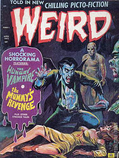 Home / Eerie Publications / Weird / Weird #3 Eerie Publications Released April 1972 Weird #3 Add to Collection Want It Synopsis No synopsis available. Issue 3 of 7 Add to Collection Buy it on eBay Buy on eBay Low $2 Mid $10 High $30 Synopsis No synopsis available. Details Series Weird Cover Date April 1972 Pages 52 UPC N/A Cover Price $0.60 Final Order Cutoff N/A Creators No creators listed. Price Guide Log in or subscribe to access detailed graded price information and market insights. Log In Subscribe
