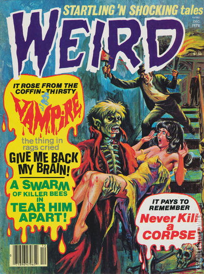 Home / Eerie Publications / Weird / Weird #4 Eerie Publications Released December 1978 Weird #4 Add to Collection Want It Synopsis No synopsis available. Issue 4 of 4 Add to Collection Buy it on eBay Buy on eBay Low $2 Mid $10 High $30 Synopsis No synopsis available. Details Series Weird Cover Date December 1978 Pages 68 UPC N/A Cover Price $1.50 Final Order Cutoff N/A Creators No creators listed. Price Guide Log in or subscribe to access detailed graded price information and market insights. Log In Subscribe