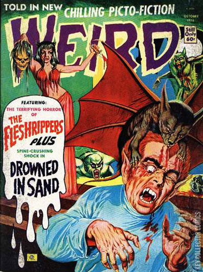 Home / Eerie Publications / Weird / Weird #6 Eerie Publications Released October 1973 Weird #6 Add to Collection Want It Synopsis No synopsis available. Issue 5 of 6 Add to Collection Buy it on eBay Buy on eBay Low $10 Mid $30 High $100 Synopsis No synopsis available. Details Series Weird Cover Date October 1973 Pages 52 UPC N/A Cover Price $0.60 Final Order Cutoff N/A Creators No creators listed. Price Guide Log in or subscribe to access detailed graded price information and market insights. Log In Subscribe