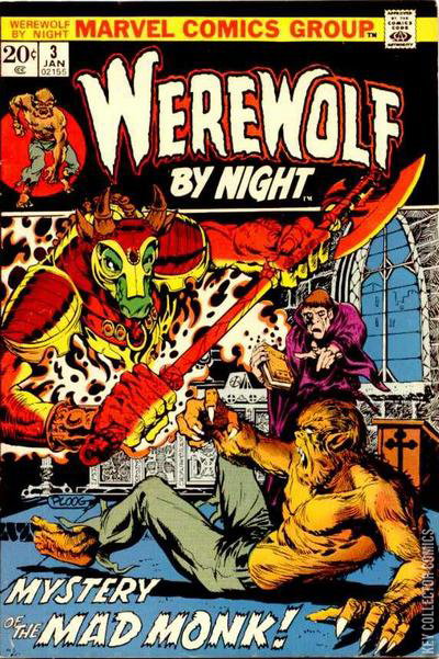 "The Mystery of the Mad Monk!" - Father Ramon Joquez peruses the mystic tome known as the Darkhold. Suddenly, a grey mist begins pouring from the pages, infecting him. He telephones Jack Russell in a panic, but the mist consumes him. Jack hops into his car and begins racing towards the rectory in Tugunga Canyon. As he’s driving, the full moon rises and Jack transforms into the Werewolf. He leaps from the vehicle, sending the car careening off the edge of a cliff. Back at the Russell estate, Lissa overhears her father on the telephone. He confesses to his part in a conspiracy to murder his late wife, Laura. Lissa runs out of the house and races towards Buck's place. As the evening grows, the Werewolf instinctively makes his way towards Father Joquez' rectory. When he arrives, he finds that Father Joquez' body has been taken over by the spirit of a 12th century monk named Aelfric. Aelfric reveals that in the year 1179 he took possession of the scrolls of Chthon – scrolls that would one day become better known as the Darkhold. Fully aware of the curse that has plagued the Russell family, Aelfric seeks to take control of the Werewolf. Using his magic, Aelfric secures the Werewolf to the wall of the rectory, while simultaneously releasing a plague known as the Grey Death upon the land. The Werewolf breaks free, and Aelfric summons a bull-headed servant named Dragonus to combat him. Dragonus charges at the werewolf, but Jack ducks out of the way. The monster's body plunges into Aelfric, goring him with his horns. Aelfric's soul is released, but Father Joquez dies from the injuries.