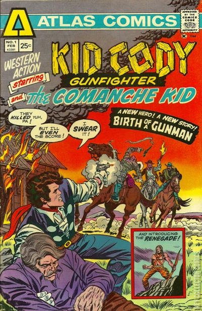 A farm boy becomes a gunslinger to take on the cattle baron who murdered his family. Written by Larry Lieber, with art by Jonny Quest creator Doug Wildey. A youth raised by Comanches becomes a force for good in the Old West. Written by Steve Skeates, with art by Jack Abel and Al Milgrom. First and only issue of the short-lived Western comic from former Marvel publisher Martin Goodmans Atlas line.