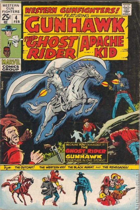 stories featuring The Original Ghost Rider, Apache Kid, The Outcast, The Western Kid, The Black Mask and The Renegades