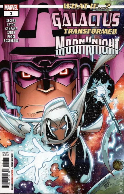 When Khonshu, the Moon God, and Galactus, the World-Devourer, clash, Moon Knight is caught in the middle! To keep the peace, Moon Knight becomes the newest herald of Galactus-but his alters cause the Power Cosmic to manifest in startling new ways! Unless Moon Knight can conquer his new powers-and a few former heralds-the Earth itself faces extinction! RATED T+