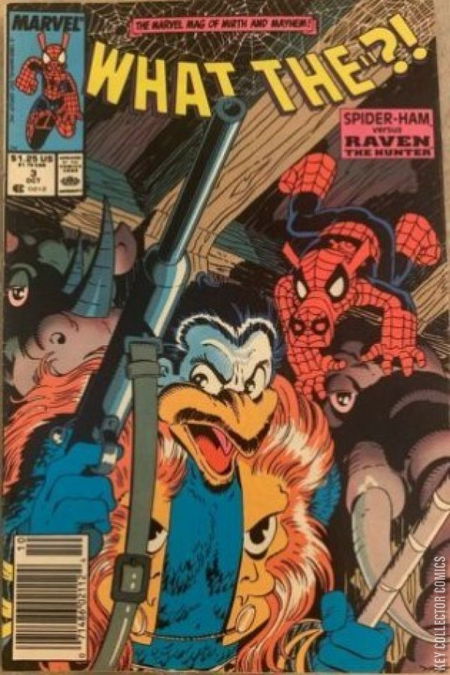 Parodies: Bat-man (as in, a man with a baseball bat) stars in "Bat-Man!" Script by Peter David, art by Todd McFarlane (2 pages). Peter Porker the Spider-Ham (Spider-Man) in "Nevermore." Script by Glenn Herdling, pencils by Alex Saviuk, inks by Bob McLeod. The Vizzion and the Scarlett Wench (Vision and Scarlet Witch) in "Homecoming Around Again." Script and pencils by Richard Purcell, inks by Joe Sinnott. Scaredevil (Daredevil) in "Eed Up!" Script and art by Fred Hembeck. The X-Men star in "Mutant Beach Party!" Script by Kurt Busiek, art by Kyle Baker. Plus two 1-page strips: "One Day in the Comics Shop" (script by Busiek, pencils by James Fry, inks by Hector Collazo) and "Marvel Super-Heroes with Pet Partners" (by Howell). Cover Penciller credit from Mike Zeck via Michael Eury. Previously credited to Alex Saviuk. Zeck also drew the cover this is a parody of, Amazing Spider-Man #294. Inker credit from Bob McLeod, via the GCD Error List. Two-page story titled 'Birth of a Hero' by Todd McFarlane Parody of 'Bat-Man' about how he chose his name Cameo of the Joker