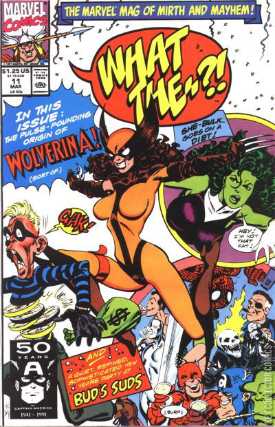 "Okay, So It's Not Such a Wonderful Life" - starring DaredevilDaredevil is confronted with overwhelming plot devices. To solve his woes, he tries to kill himself. Instead of dying, however, he is treated to what life would be like if other Marvel writers took control of his life. "What Is Your New Years Resolution?"Various Marvel characters give their resolutions for a new year. "This Man, This Meal" - starring She-BulkThe She-Bulk takes on a grocery store of killer food. "Hazards of Being a Super-Hero"A quick survey of problems various heroes have to live with as a result of their awesome powers. "Auld Lang Syne"Everyone, and that means everyone, is at Bud's Suds to celebrate the New Year. But will everyone survive Mr. Hide's bomb attack?