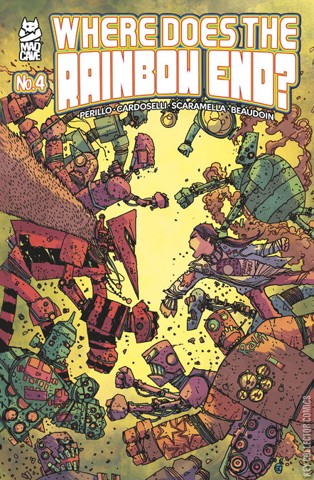 The robots from the “Dark Cage” and “Rainbow” Sectors come to blows in this final issue of Where Does The Rainbow End! Who will survive this final explosive confrontation, and will Gilda stay with her robot family or abandon them to join the rest of humanity?!