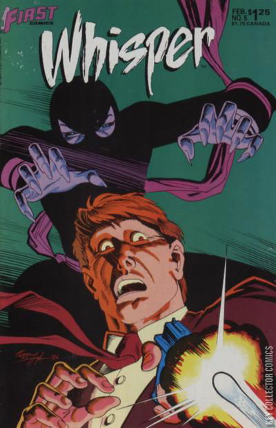 Home / First / Whisper / Whisper #5 First Released February 1987 Whisper #5 Add to Collection Want It Synopsis No synopsis available. Issue 5 of 38 Add to Collection Buy it on eBay Buy on eBay Low $1 Mid $2 High $3 Synopsis No synopsis available. Details Series Whisper Cover Date February 1987 Pages N/A UPC N/A Cover Price $1.25 Final Order Cutoff N/A Creators No creators listed. Price Guide Log in or subscribe to access detailed graded price information and market insights. Log In Subscribe