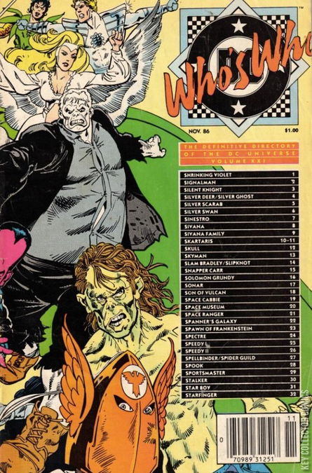 The Definitive Directory of the DC Universe containing profiles on characters listed from Shrinking Violet to Starfinger.