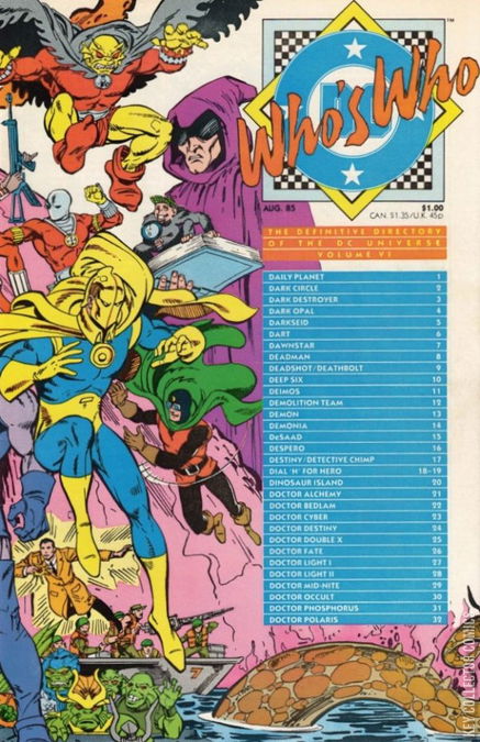 The Definitive Directory of the DC Universe containing profiles on characters listed from Daily Planet to Doctor Polaris.