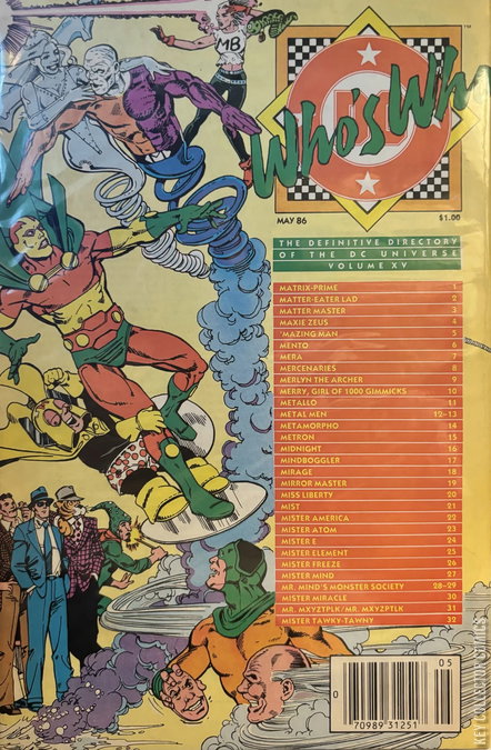 The Definitive Directory of the DC Universe containing profiles on characters listed from Matrix-Prime to Mister Tawny-Tawny.