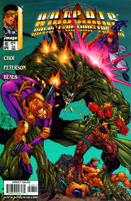 "When Worlds Collide, Part 1" Zannah is interrogating de Medici when the Kherubim ship is rocked by the Daemonite attack. On the bridge, an explosion kills the captain, and Stratos assumes command. Aboard the Daemonite ship, the WildC.A.T.s find the second Puritan team arming a nuclear warhead while fending off Daemonites. Meanwhile, the Daemonite captain sends troops to board the Kherubim ship. Stratos and the Coda meet up with Zannah just as the Kherubim hull is breached. In the present, FBI Agents Clark and Ludlum have survived a plane crash following the destruction of Sector 52. They receive a call from Clark’s brother who is with a Sector 52 survivor in Roswell, New Mexico. Back in the past, Mythos disarms the warhead, and the WildC.A.T.s retreat just before an explosion kills the remaining Puritans and Daemonites. They then put on Puritan uniforms, which include devices to return them to the present, and steal a Daemonite shuttle which they crash into the Kherubim ship. They emerge from the wreckage and find de Medici. Elsewhere, Zannah and Stratos fight the Daemonite boarders while Lord Emp prepares to crash land on Earth.