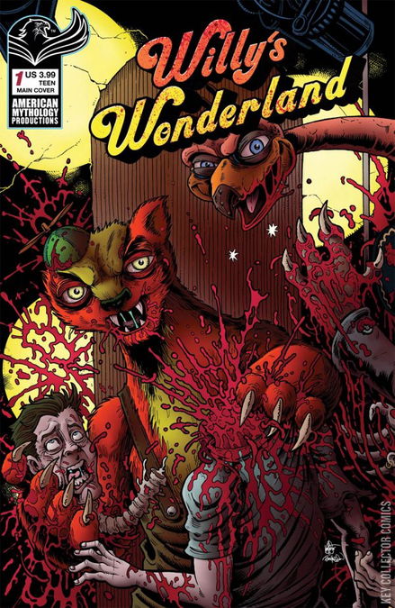Hey Kids! Do you know what time it is? It's your birthday and we want you to have Fun! Welcome to Willy's Wonderland! The surprise hit horror flick of 2021 is Willy's Wonderland! Nicolas Cage unleashes a can of Punch Pop on the Willy's serial killing animatronic crew in the film, but what came before the janitorial rampage? Find out here in this official prequel to the movie giving you all the party filled blood spatter you can handle! Willy, Ozzie, Arty, Cammy, Tito, Gus, Sara, and Knighty Knight all are back with a blood soaked romp through homicidal birthday parties! This special series is written by SA Check (Volcanosaurus) and James Kuhoric (Freddy vs Jason vs Ash) with interior art by Puis Calzada (Hatchet). Willy's Wonderland Prequel #1 comes with three covers - Main Connecting Cover (issues #1-4 make a huge single shot of terrifying birthday horror) by the horror team of Buz Hasson & Ken Haeser (The Living Corpse), Variant by interior artist Puis Calzada (Hatchet), and a special rare "Slashin' Time" movie poster edition featuring Willy Weasel!