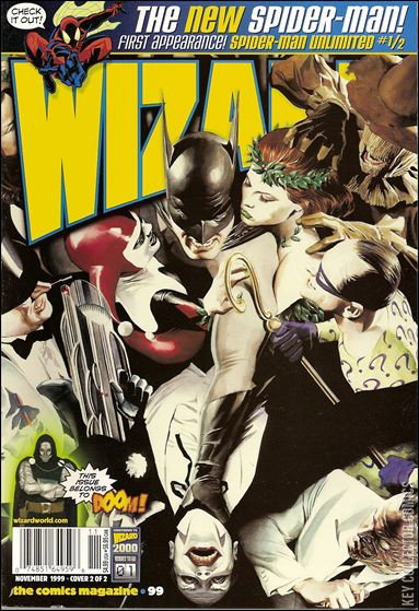 Star Wars Darth Maul painted cover by Joe Jusko. Polybagged with X-Men movie guide. Last Woman Standing: Vampirella vs. Buffy drawn by Matt Haley and Tom Simmons; First Look: Soul Saga, with comments from Chris Lichtner and Stephen Platt; First Look: Legs, with comments from Sam Kieth; Strip Tease: 3-page 'Eltingville' strip by Evan Dorkin; Alex Ross sketches and comments on Batman: War on Crime; Wizard tracks down what comics' greatest villains have planned, with Chriscross/Rob Stull illo; Q & A with Ray Park; Basic Training by Scott McDaniel; top 10 things that scare even Dr. Doom; Character Profile: Dr. Doom Cover price $4.99.
