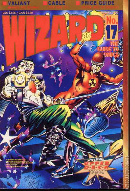 Gold at top of cover. Polybagged. David Lapham Valiant superheroes cover. Polybagged with trading cards. Gatefold cover. Has pull out poster. Writing at the Edge by David Quinn; Brutes & Babes by Bart Sears; Fabian Nicieza interview; roundtable interview on Valiant with Steve Massarsky, Bob Layton, Jon Hartz and Barry Windsor-Smith; Dave Sim interview; Roy Thomas discusses Bram Stoker's Dracula. Cover price $3.95.