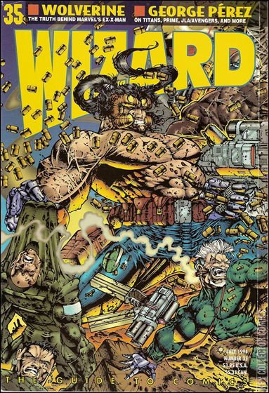 Wolverine cover by Mark Texeira. Wolverine cover. Polybagged with extras. Poster. Rob Liefeld and Stephen Platt discuss Prophet; article on the puzzling past of Wolverine; Brutes & Babes by Bart Sears; Dennis O'Neil, Archie Goodwin, Doug Moench, Chuck Dixon and Scott Peterson discuss Batman; George Perez interview; Roy Thomas and Rafael Kayanan discuss Conan the Adventurer; E.G.O. column by Todd McFarlane; Wizard Profile: Gerhard (Cerebus). Cover price $3.95.