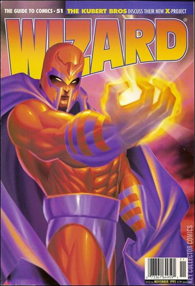 Polybagged with extras. Voice actors behind the X-Men animated series have their say; behind the scenes at the Avengelyne Swimsuit Edition photo shoot; David Lapham discusses Stray Bullets; First Look: Witchblade, with comments from Marc Silvestri; Greg Capullo's Krash Course; interview with Adam Kubert and Andy Kubert; Jim Lee interviews Chris Claremont; interview with Harvey Pekar and Joyce Brabner; Everyone's Got Opinions by Todd McFarlane; Wizard Profile: Tom Lyle. Cover price $4.55.