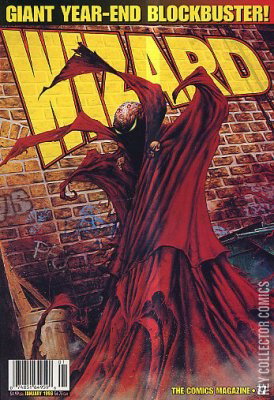 Spawn cover. Polybagged with extras. Article on Marvel's shift to focus on core super-heroes in coherent universe; article on large publishers acquiring independent titles; Todd McFarlane interview; 1998 preview; Wizard picks the best of 1997; Basic Training by George Perez; Character Profile: Ka-Zar; Creator Spotlight: Michael Turner; Time Travel: Peter Sanderson on Claremont and Byrne's historic Uncanny X-Men run. Cover price $4.99.