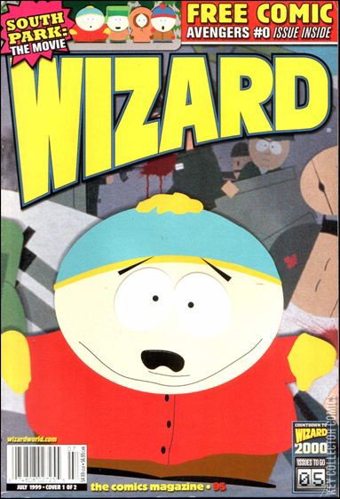 Southpark cover. Polybagged with Avengers # 0. Last Man Standing: Ant-Man vs. the Atom drawn by Mike Wieringo; First Look: Batman: War on Crime, with comments from Alex Ross and Paul Dini; First Look: New Warriors, with comments from Jay Faerber and Steve Scott; First Look: Speed Racer, with comments from Tommy Yune; First Look: Batman: Dark Victory, with comments from Jeph Loeb and Tim Sale; Matt Stone discusses South Park: Bigger, Longer & Uncut; Q & A with Alan Moore; 1999 summer preview; Basic Training by Sean Chen; Top 10 Pokemon Heroes & Villains, including Punishu and Spider-Meowth; Character Profile: Spider-Girl; Off the Cuff with Beau Smith; Time Travel: Russell Lissau and John B. Lacey look back on Superman's debut in Action Comics #1. Cover price $4.99.