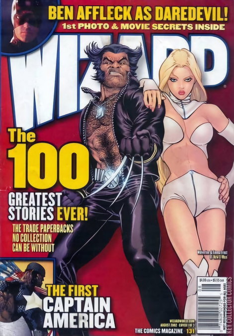 Cover 1 of 3: Wolverine and Emma Frost by Kevin Maguire;�Cover 2 of 3 Truth (Captain America) by Joe Quesada, Danny Miki, & Richard Isanove;�Cover 3 of 3 Thundercats by Ed McGuinness, Jason Martin, & Chris Walker.� Polybagged with extras. Last Woman Standing: Elektra vs. Scarlett drawn by Greg Horn; First Look: Brath, with comments from Chuck Dixon; 6 pages from ThunderCats; 3 pages of Phil Noto character sketches; Axel Alonso interview; Wizard spotlights 5 samurai titles, with Pete Woods/Rebecca Woods illo; top 100 trade paperbacks of all time; Basic Training by Tom Raney and Scott Hanna; Book of the Month: Ruse; Secret Stash: 30 Days of Night; pros reveal convention horror stories; Kevin Smith checklist; J. Michael Straczynski checklist; The Hot Seat: Yancy Butler. Cover price $4.99.