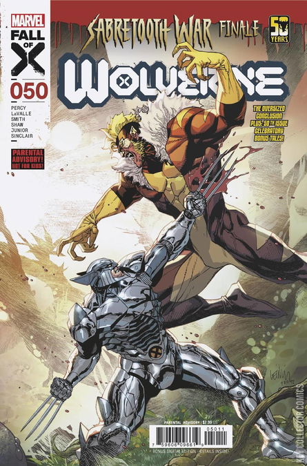 CREED VS. LOGAN - THE FINAL SHOWDOWN! It's all come down to this: the final battle between WOLVERINE and SABRETOOTH. The Sabretooth War concludes in the way it began - a violent, bloody battle - but WHO will be left standing? Plus: Special short stories celebrating fifty issues of this run and 50 YEARS OF WOLVERINE, from legendary Logan scribes including Larry Hama, as well as a final send-off from Benjamin Percy and Javi Fern�ndez, and some special SURPRISES! Rated T+