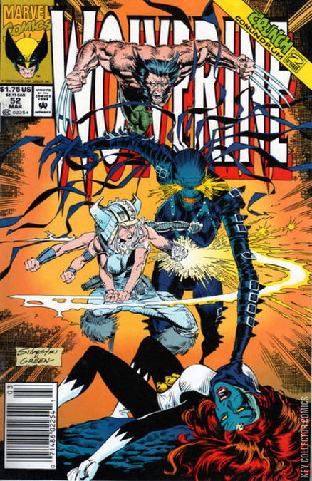 The Crunch Conundrum: Part 2 of 3 - "Citadel at the End of Time!" Written by Larry Hama. Art by Marc Silvestri and Dan Green. Mojo has sinister plans for the Crunch, so Wolverine, Mystique, and Spiral head into the time/space vortex to stop the spineless villain.