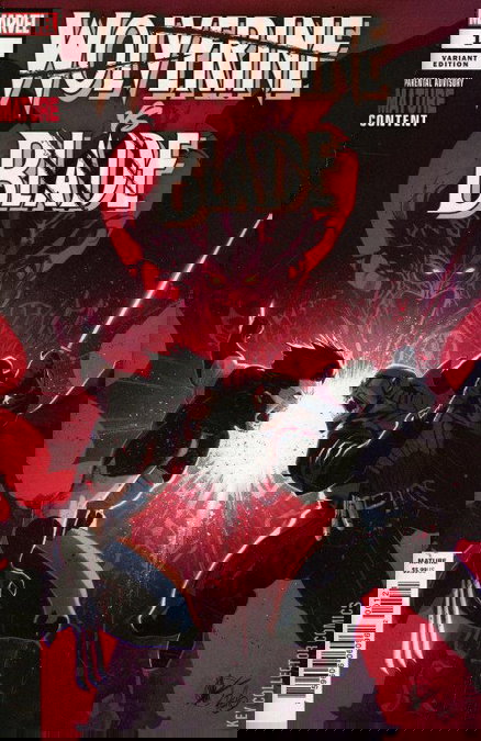 Two of the deadliest hunters ever to have stalked the night face off! Wolverine vs. Blade — ’nuff said!