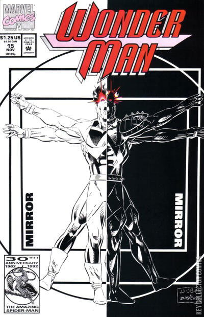 A battle rages inside Wonder Man that climaxes in the final confrontation against his evil double. Introspection, darkness, a touch of humor, all mixed into one.