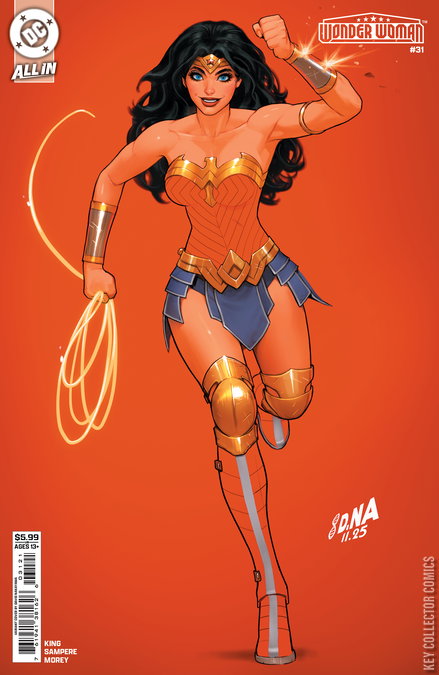 THE WONDER WAR BEGINS! The Matriarch commences her crusade to rule over the DC Universe. As heroes and villains alike fall to her insurmountable power, Wonder Woman and her daughter Trinity must unite to save all that they hold dear. Time’s up for the princesses of Themyscira, and the Queen of America will not rest until they bow to her will. The Eisner-nominated creative duo of Tom King (Supergirl: Woman of Tomorrow) and Daniel Sampere (Dark Crisis) is back for the most riveting installment of their Wonder Woman epic yet!