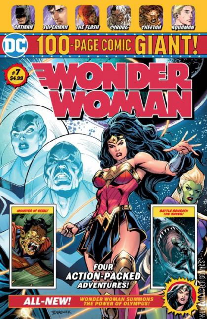 WONDER WOMAN “COME BACK TO ME PART TWELVE: THE CIRCLE OF DEATH” Wonder Woman must team up with Princess Sibella once again if she’s going to stop the immensely powerful Lords of Light – but can the two princesses work together after Sibella’s betrayal? JUSTICE LEAGUE “THE SECRET OF THE CHEETAH PART TWO” The League must fight the mysterious Cheetah and a monstrous Superman in the history-changing conclusion to “The Secret of the Cheetah”! WONDER WOMAN “BACKSTORY” The secret origins of Wonder Woman, Donna Troy, Wonder Girl, Sarge Steel and Nemesis are revealed! AQUAMAN “UNDERWATER” Arthur discovers the truth about his heritage in this revealing tale of his first encounter with the people of Atlantis!