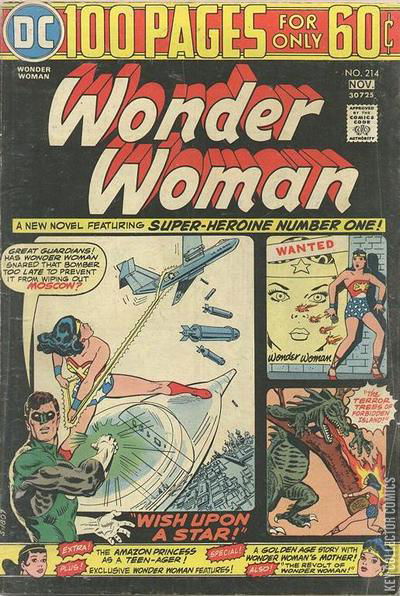 When restaraunteur Henry Tudor learns that the star-shaped Celtic Amulet he wears can make wishes come true when Diana Prince, who wears a similar amulet, makes a wish, he tests it by wishing to become king of the world. The amulet’s power causes a U.S. bomber to head for Moscow, with orders to nuke the Russian capital. A world war can only result from this, and Tudor finds himself accidentally locked in a bank vault that will protect him from the holocaust, leaving him as one of the few people to survive it, and thus rule it. Green Lantern’s ring is bollixed by the magic, but Diana Prince becomes Wonder Woman, snags the bombs in her lasso, and muffles their explosion with its magic power. Afterward, GL’s ring functions normally and he breaks Tudor out of the bank vault, having learned of his predicament in the course of the adventure. Green Lantern files his report of the case with the JLA, recommending that Wonder Woman be reinstated.