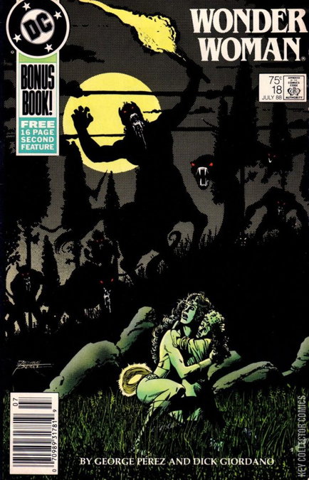 CREATURES OF THE DARK / LEGEND OF THE AMAZONS This book also contains a bonus issue called "Legend Of The Amazons" which shows the up and coming writers and artists. Zeus, Poseidon and Hades meet in a confined area where the remains of Chronus lie. After the three had killed their father, they hid the scroll called “The Olympian Pact”. Zeus comments on the pact, saying that the rule should be divided equally amongst the three of them, and it took a mortal woman to make him realise that. Hades corrects his brother, saying that Wonder Woman is no mere mortal as she has earned the respect amongst Man. The three brothers continue with the pact. Poseidon raises his trident, Hades his staff and Zeus with his sceptre and the symbols that represent their power come together and a new scroll is created, getting rid of the old one.On...
