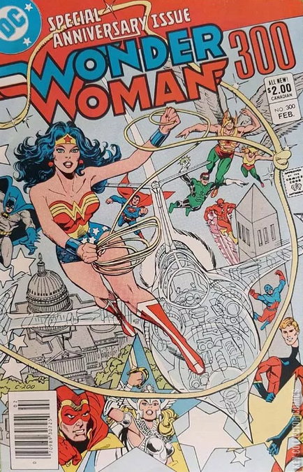 The Amazing Amazon was joined by a host of DC's greatest heroes to celebrate her 300th issue in a 72 page blockbuster. The story featured Wonder Woman and the dream-hopping Sandman as they battled a series of nightmares, one of which playfully included a marriage between the Amazon Princess and Superman.