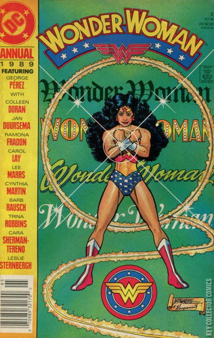 THE GAME OF THE NAME / HEADLINE / TRADEMARK / LOGO / PLAY LIKE / BANNER / MARQUEE / LEGEND / TRIBUTE Wonder Woman's name and legacy is the focus of this Annual featuring all-women illustrators exclusively!