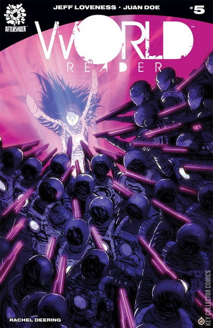 Sarah reaches her final planet, where the hope of life beyond our world may still exist. But the true nature of her mission is revealed...and the deeper mystery of The Faded Man takes shape. The cataclysmic, penultimate chapter of World Reader will change EVERYTHING. From Groot and Jimmy Kimmel Live! writer Jeff Loveness and AMERICAN MONSTER, ANIMOSITY: THE RISE artist Juan Doe, comes the chilling, epic new series that will be sure to appeal to fans of The Arrival, Interstellar, and The Expanse.