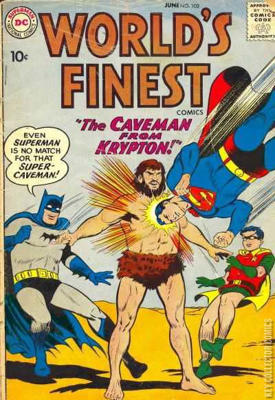 The Caveman From Krypton (Superman, Batman and Robin / written by Bill Finger) -- 2. Fred Finds A Way! (public service message / written by Jack Schiff) -- 3. L'il Brontosaurus (gag strip by Henry Boltinoff) -- 4. The Winged Space Raider (Tommy Tomorrow / written by Arnold Drake) -- 5. The Sound Searchers (full text story) -- 6. Case of the Camouflage King! (Green Arrow, Speedy / written by Ed Herron)Batman: Even Superman is no match for that Super-caveman!