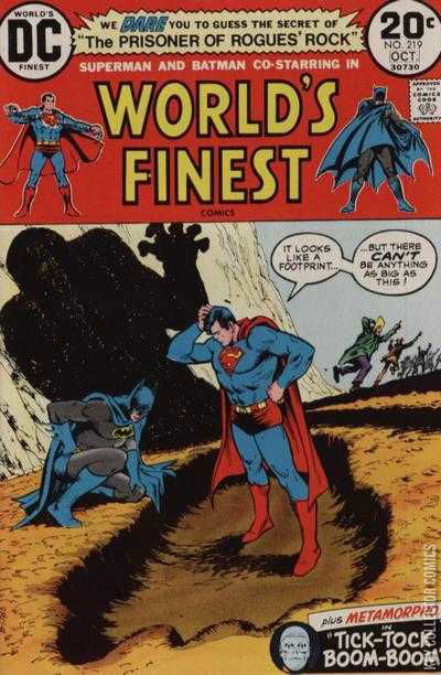The Prisoner of Rogue's Rock! (Superman and Batman / written by Bob Haney : continues next issue) From the World's Finest Fans (letters and fan mail) Includes a letter from Bob Rozakis Tick-Tock Boom Boom (Metamorpho / written by Bob Haney)